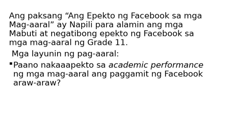 Layunin Ng Pag Aaral | PDF