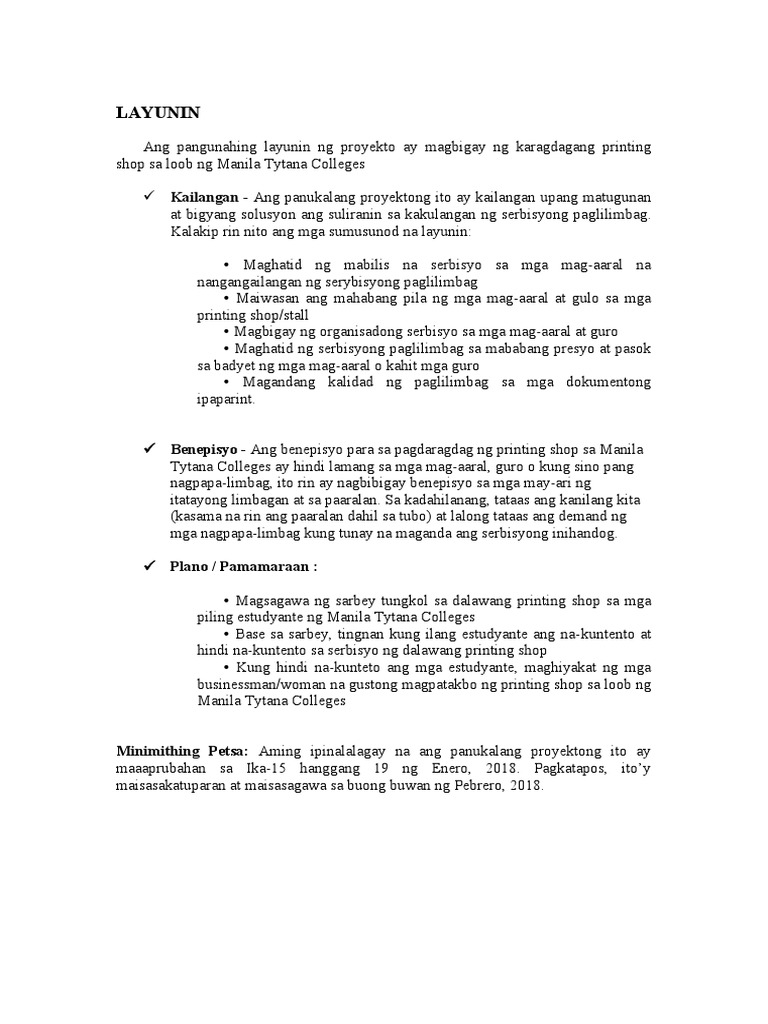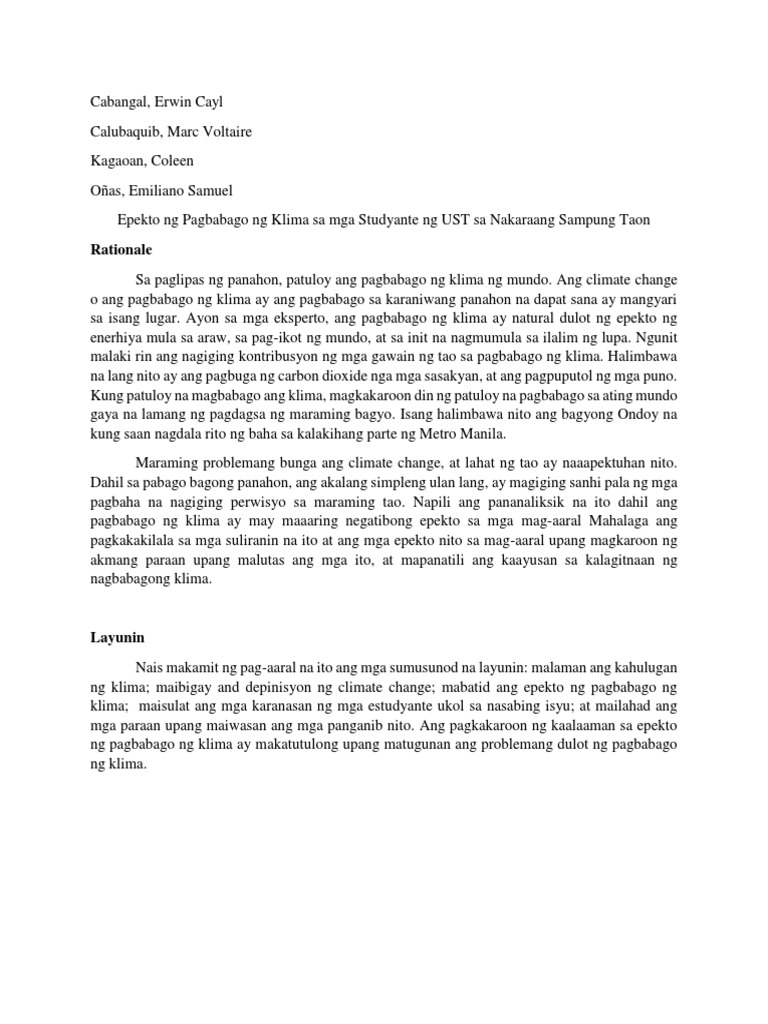 (DOC) Paglalahad ng Layunin