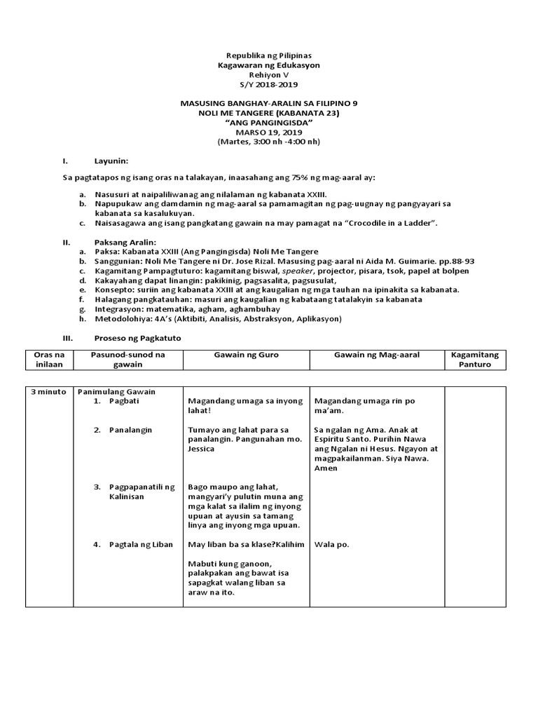 Masusing Banghay Aralin Mga Layunin Sa Pagtatapos Ng Aralin Ang - Free ...