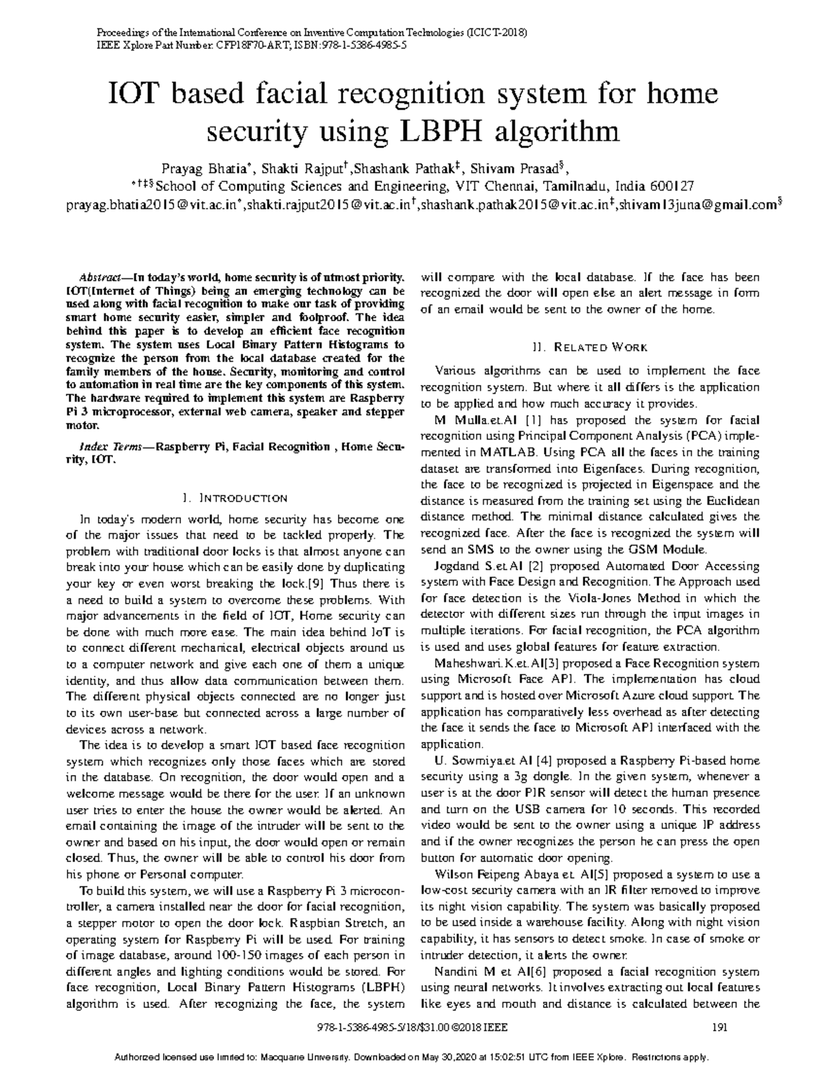 Research works - IOT based facial recognition system for home security ...