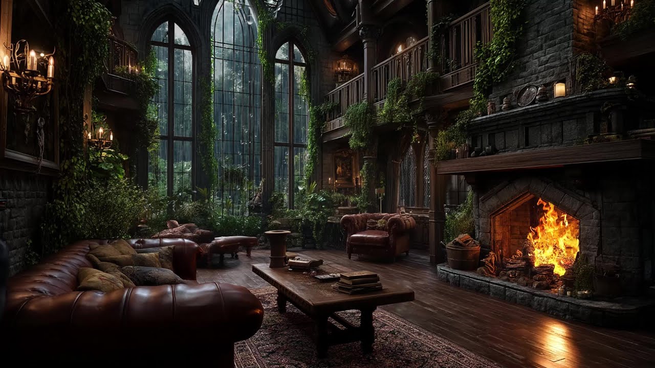 Peaceful Ambience in the Rainy Castle | Rolling Thunder and Fireplace ...