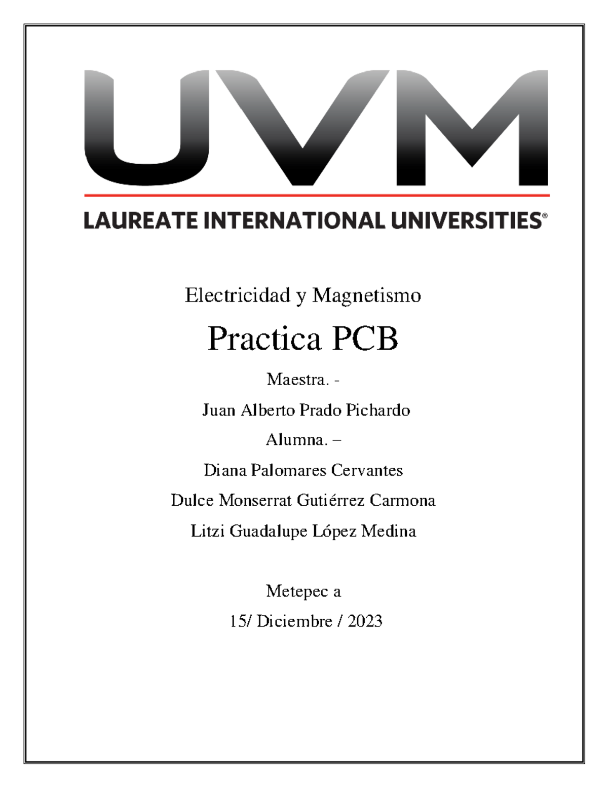 Práctica de Electricidad y Magnetismo PCB LDDD - Diciembre 2023 - Studocu