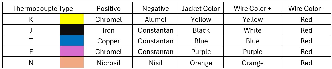 Thermocouple/Extension Lead Wire (Color Code of Extension Lead Wire ...