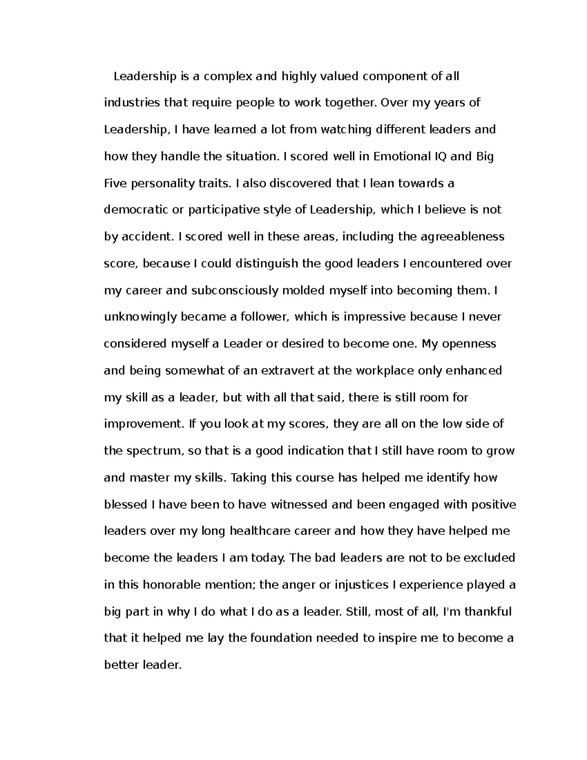 Reflective Leadership Essay | PDF | Leadership | Essays