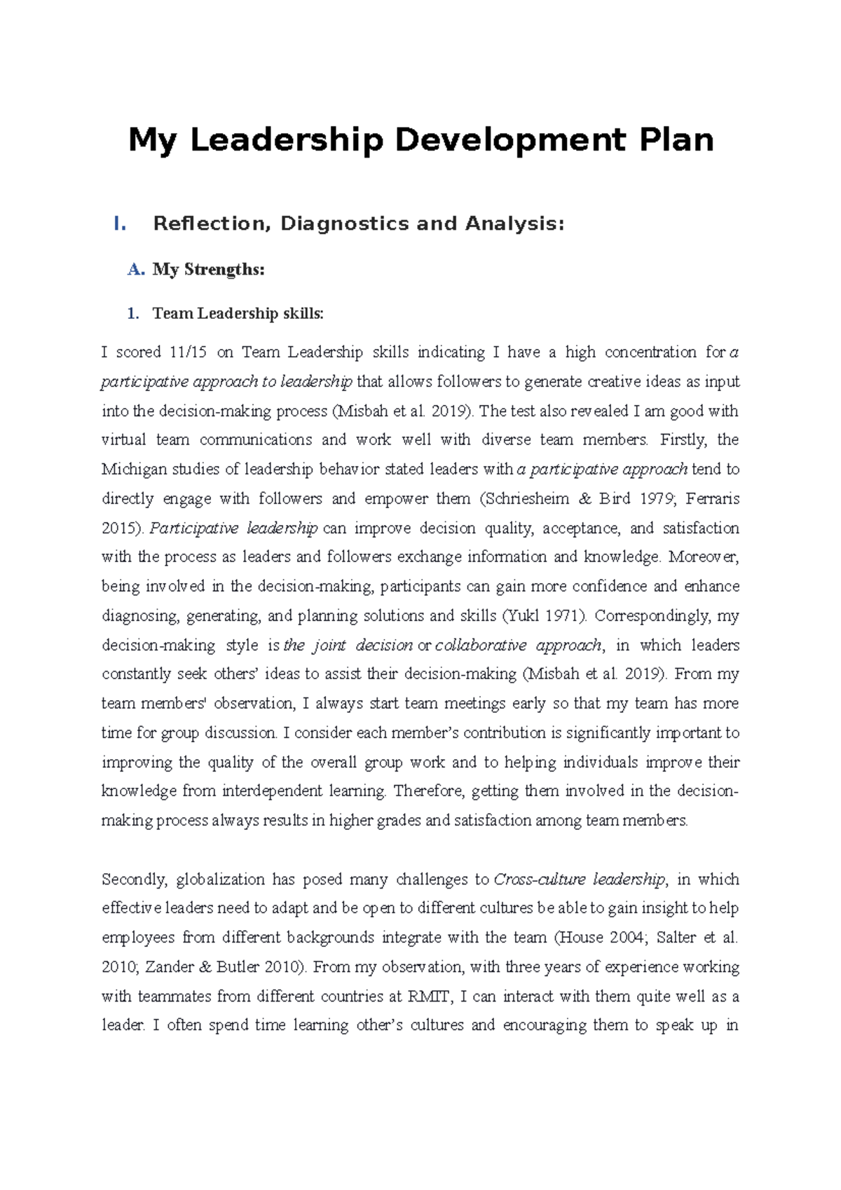 Leadership Development Plan - Reflection, Diagnostics and Analysis: A ...