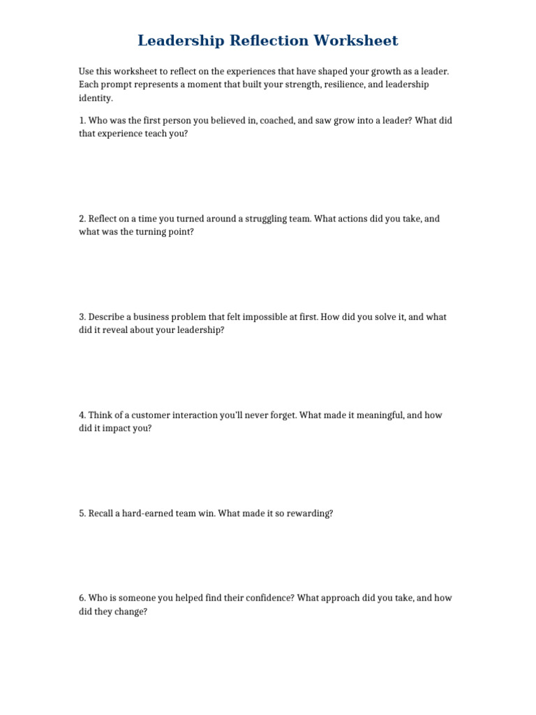Leadership Reflection Worksheet by Kate Ozarka | TPT