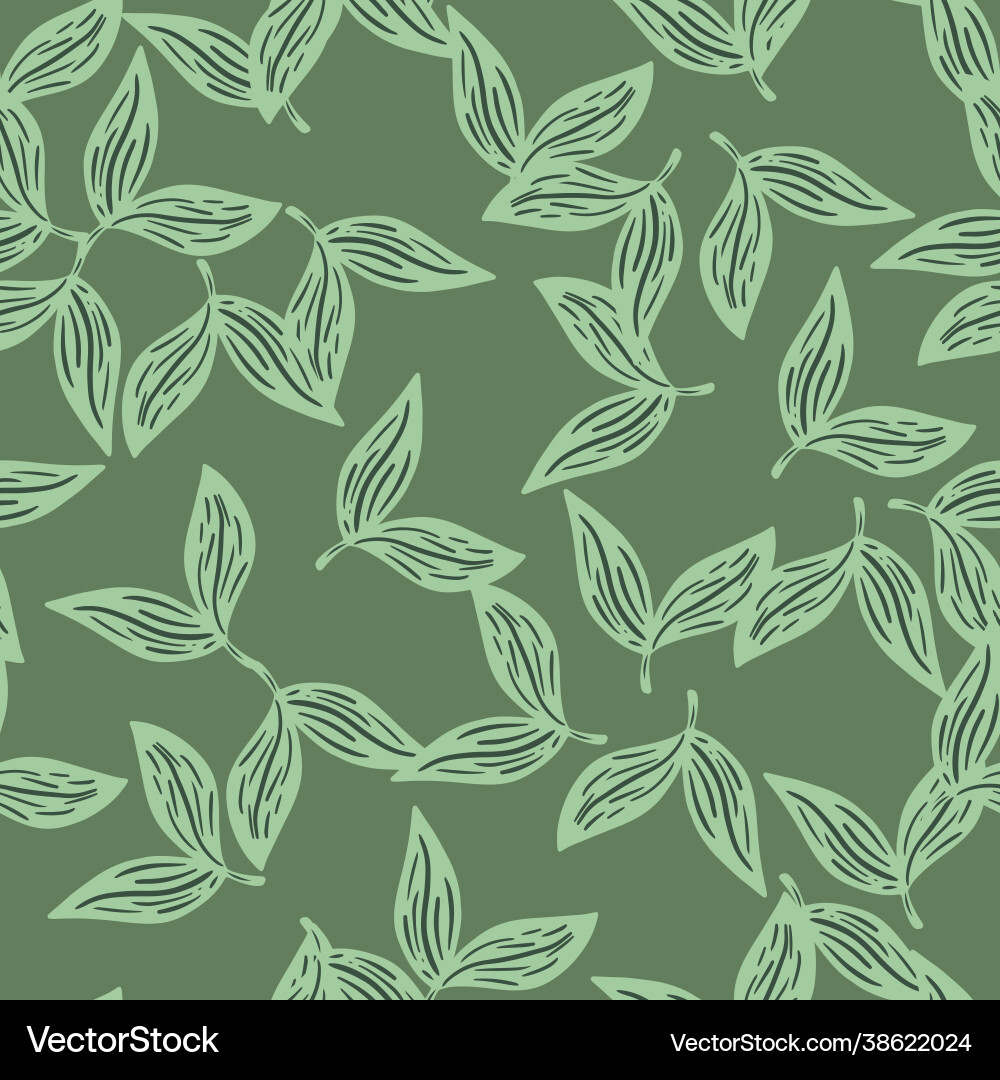 Random green doodle leaves seamless pattern Vector Image