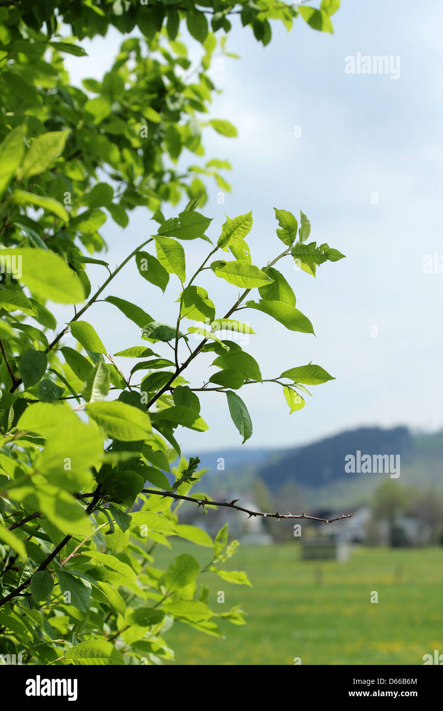 Fresh green spring leaves on tree branches Stock Photo - Alamy