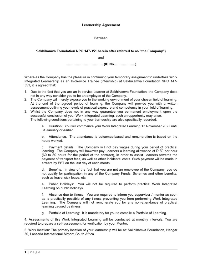 Learnership Contract Template, 2022 - 3 | PDF | Employment | Learning