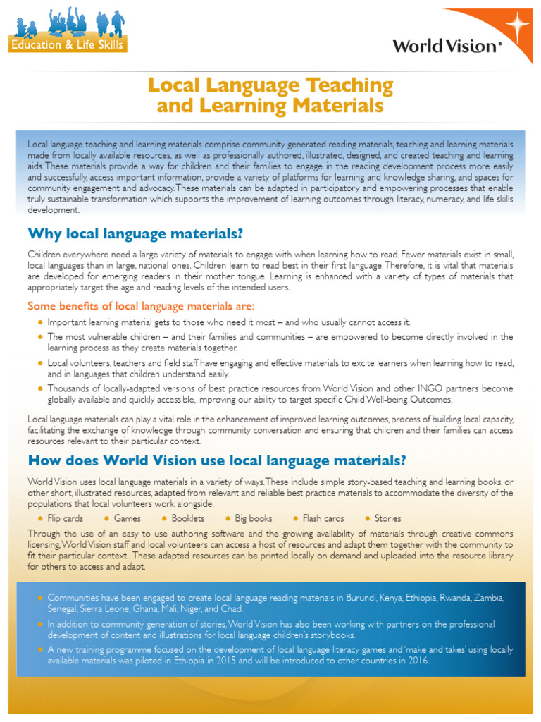 Local Language Teaching and Learning Materials - FINAL | PDF | Language ...