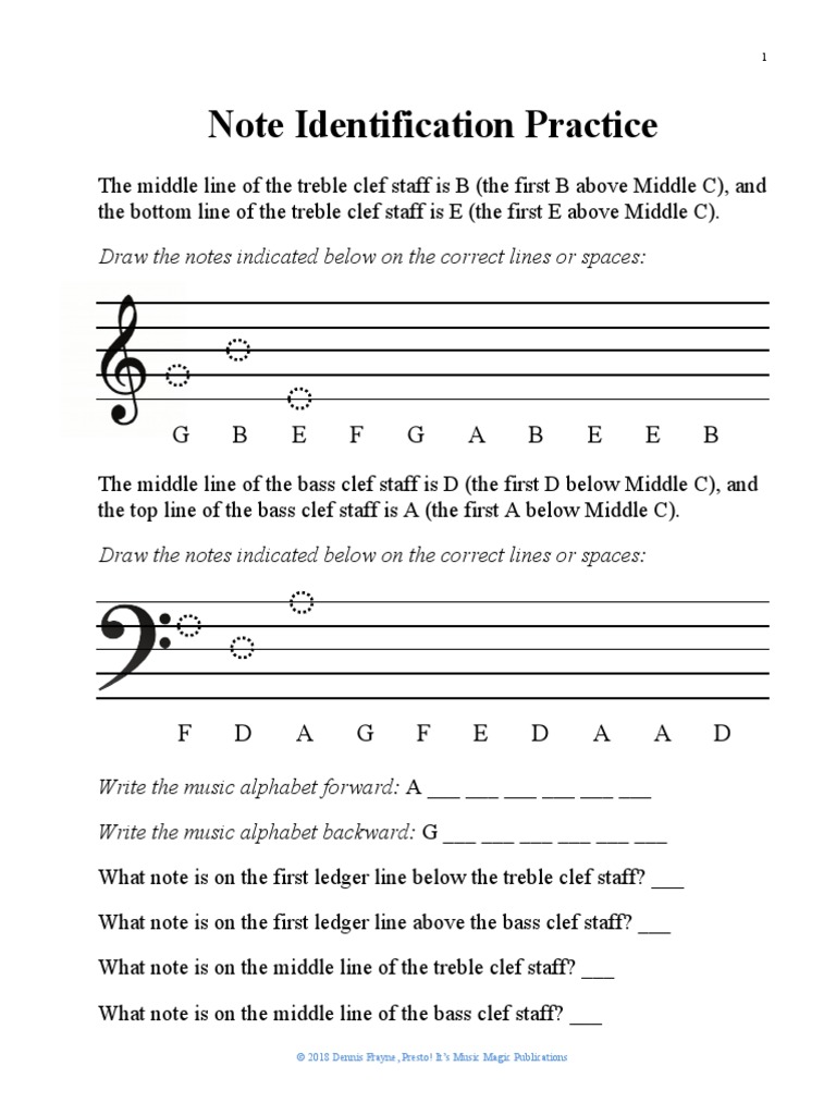 Free Note Identification Worksheets — Mad Music - Music Education ...