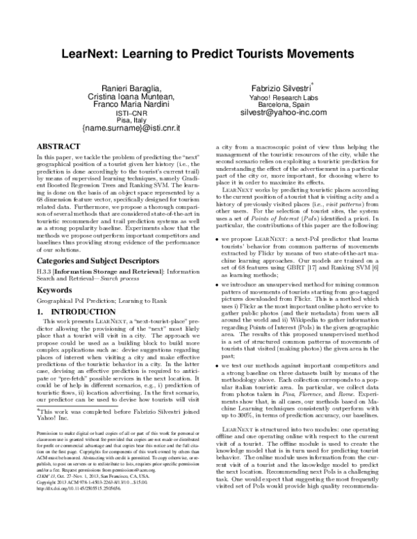 (PDF) LearNext: Learning to Predict Tourists Movements