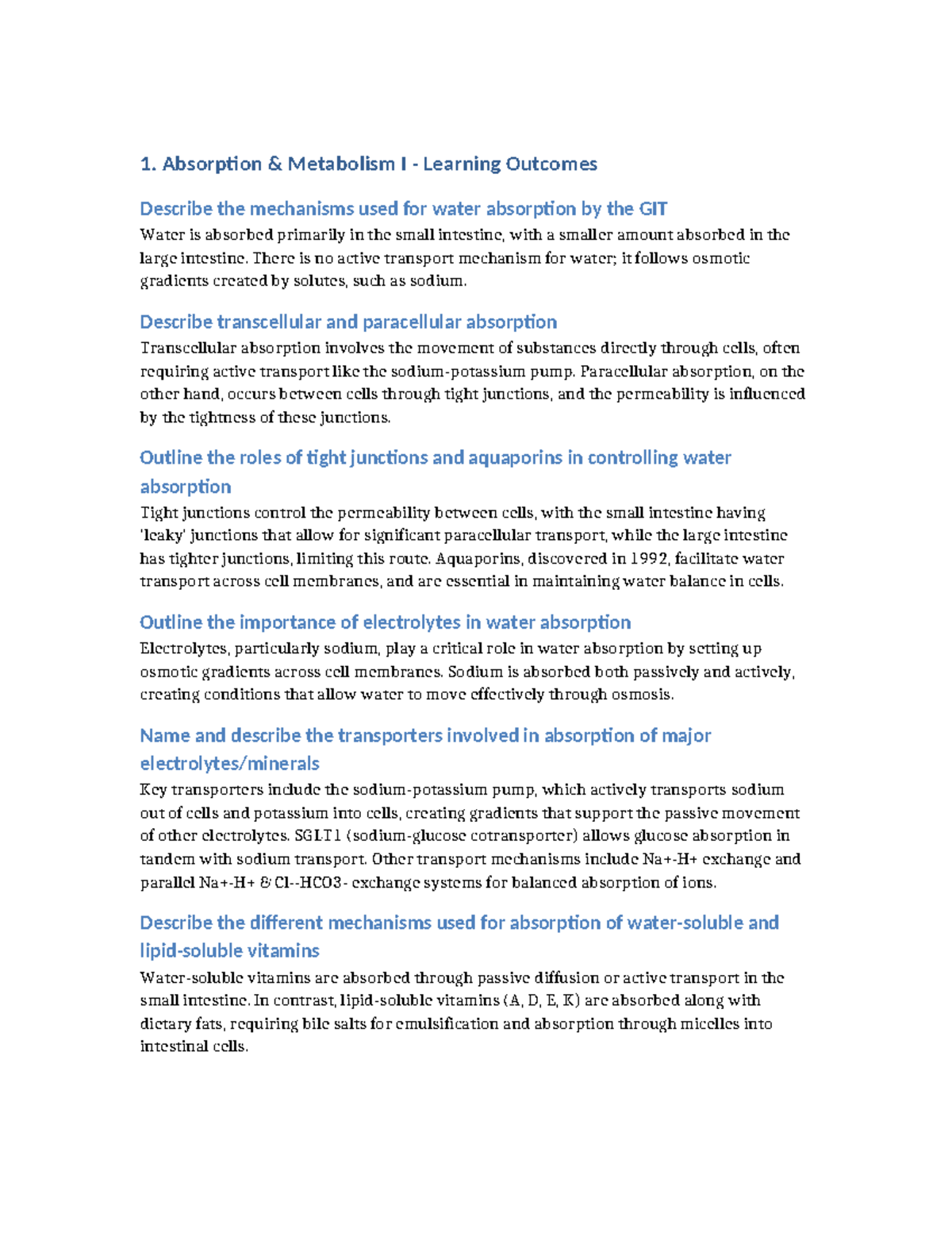 1. Absorption & metabolism I LO - 1. Absorption & Metabolism I ...