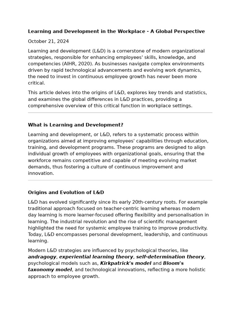 Learning and Development - An Essential Tool for Organizational and ...