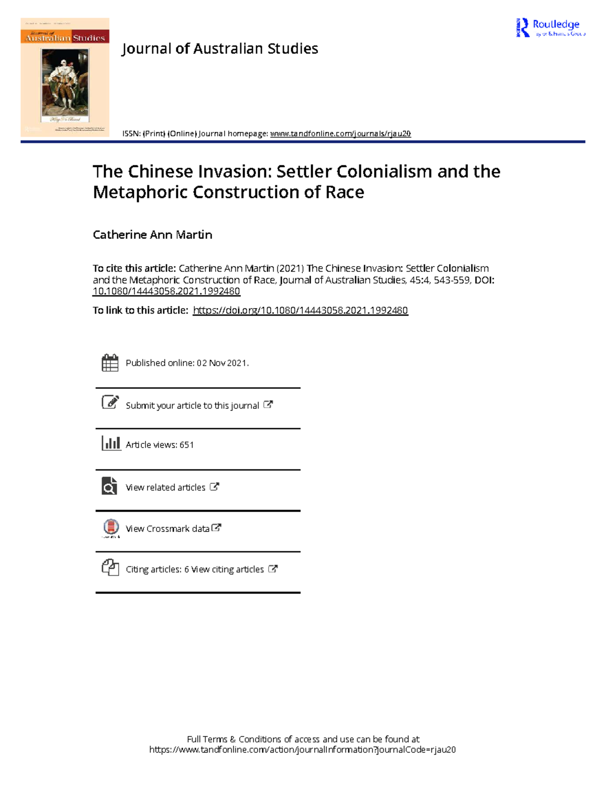 The Chinese Invasion: Settler Colonialism & Racial Metaphors in AUS ...