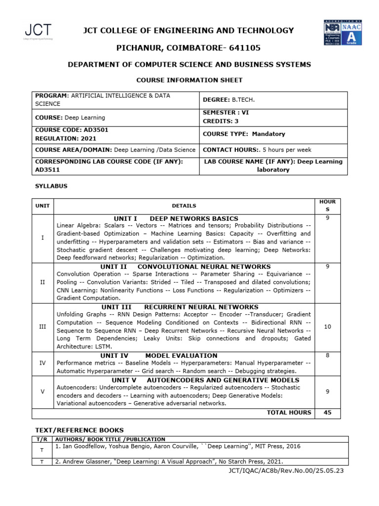 Course Information Sheet | PDF | Deep Learning | Artificial Intelligence