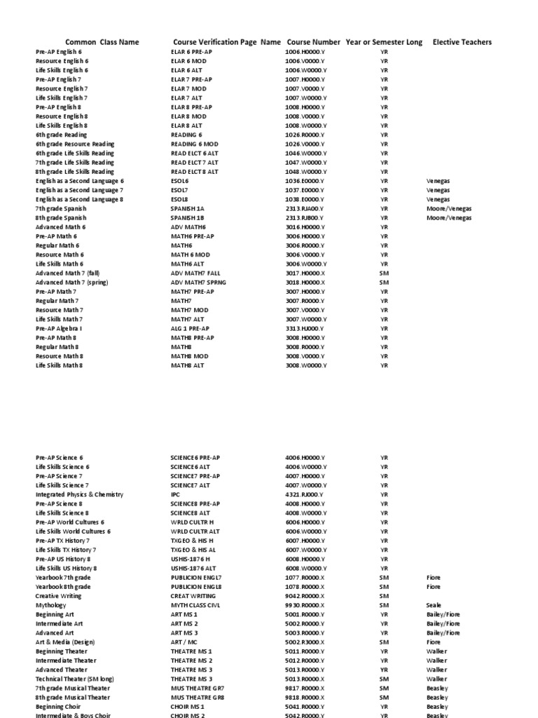 Course names and numbers. | Download Table