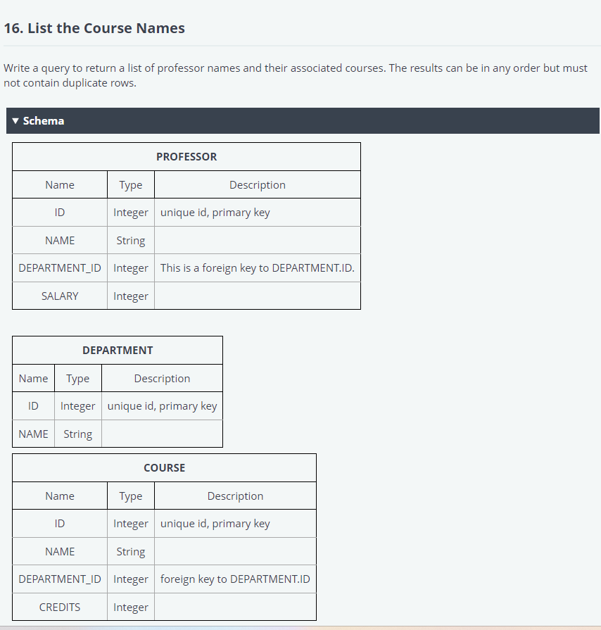 Solved 16. List the Course Names Write a query to return a | Chegg.com
