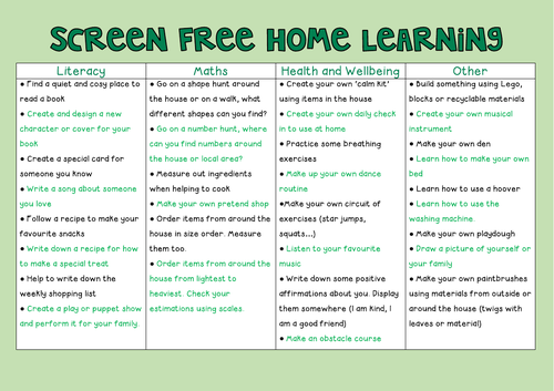 Foundation – Week 1 Learning from Home Activity Grids Teaching Resource ...