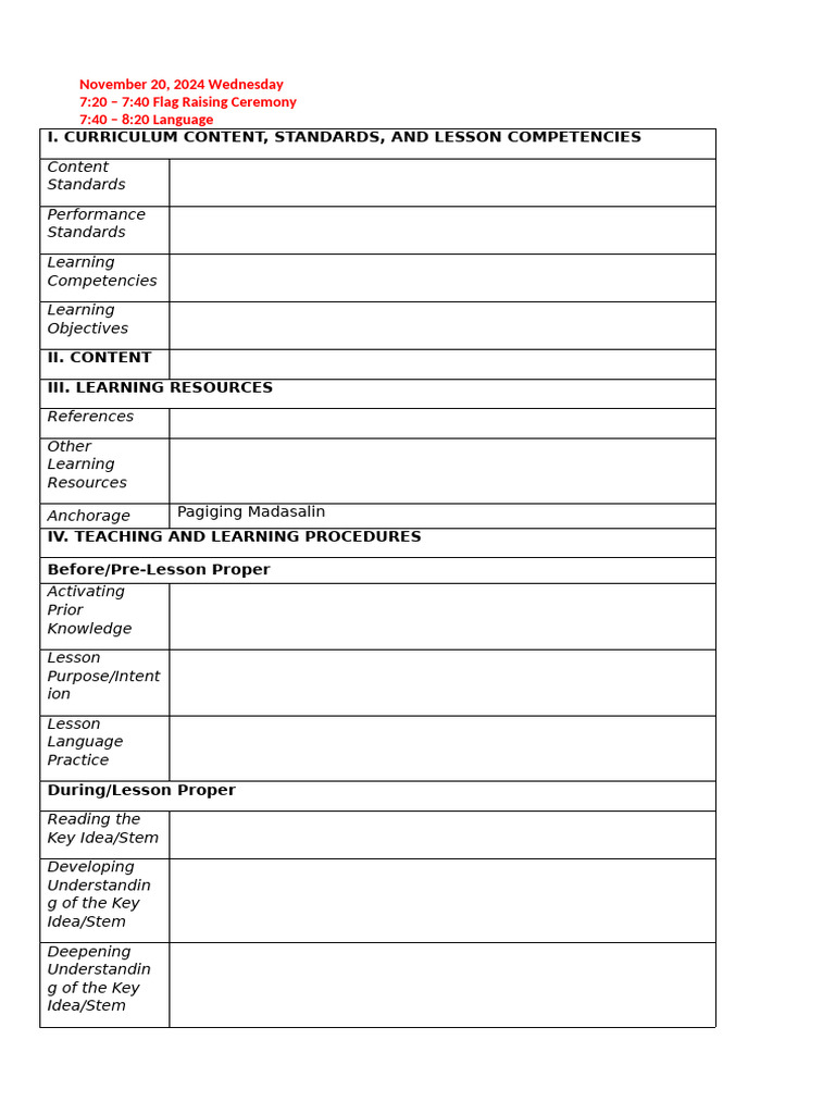 Daily Teaching Schedule and Curriculum Guide | PDF | Learning ...