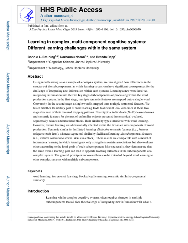 (PDF) Learning in complex, multi-component cognitive systems: Different ...