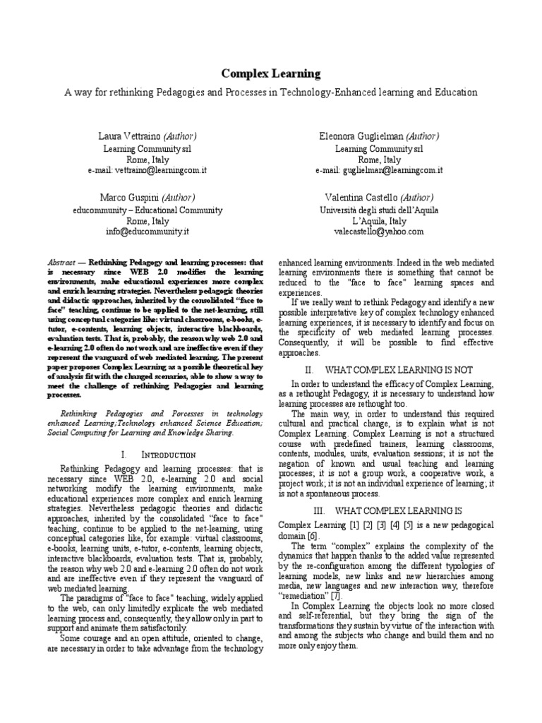 Complex Learning: A Way For Rethinking Pedagogies and Processes in ...