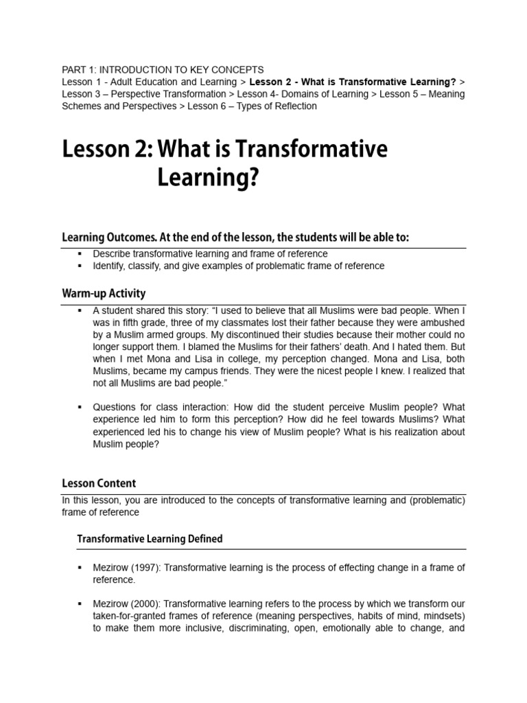 Lesson 2 What Is Transformative Learning | PDF | Cognitive Psychology ...