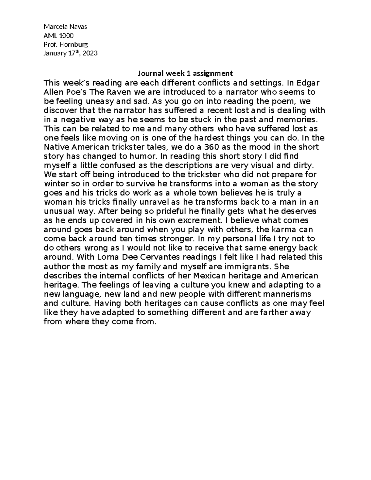 Journal week 1 assignment - Marcela Navas AML 1000 Prof. Hornburg ...