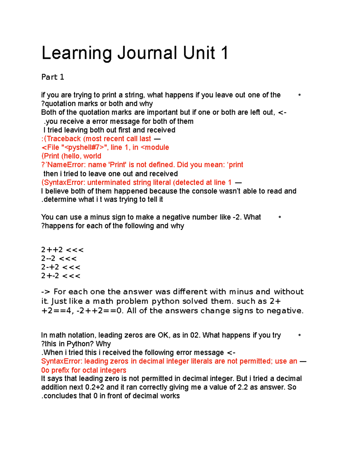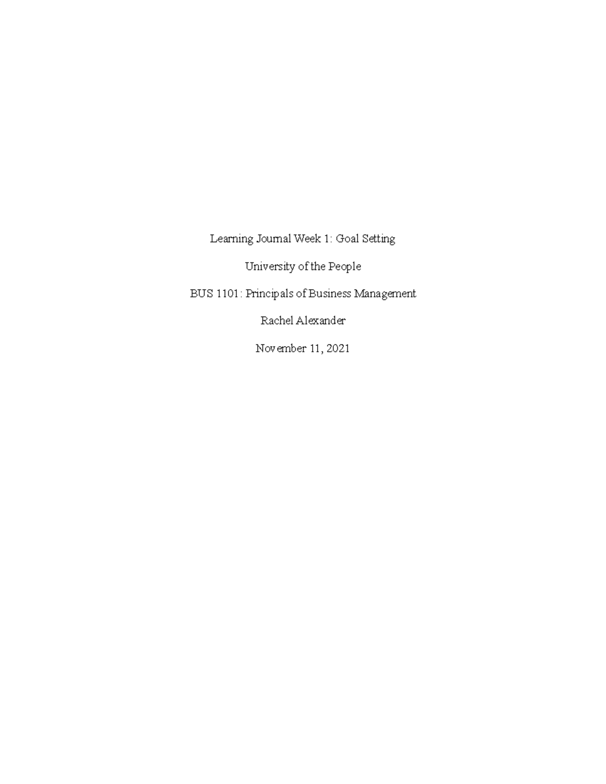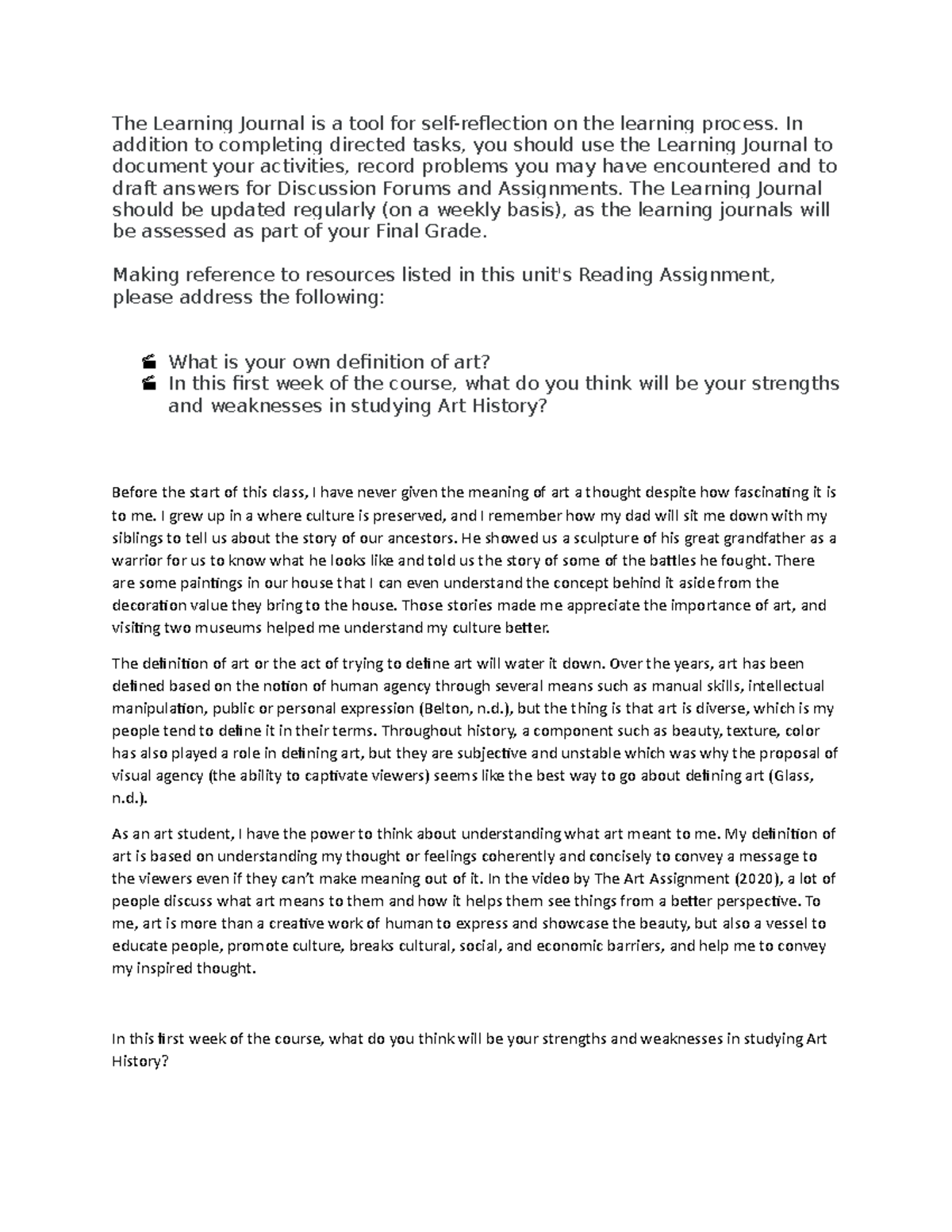 Learning journal assignment answers for week 1 - Learning Journal ...