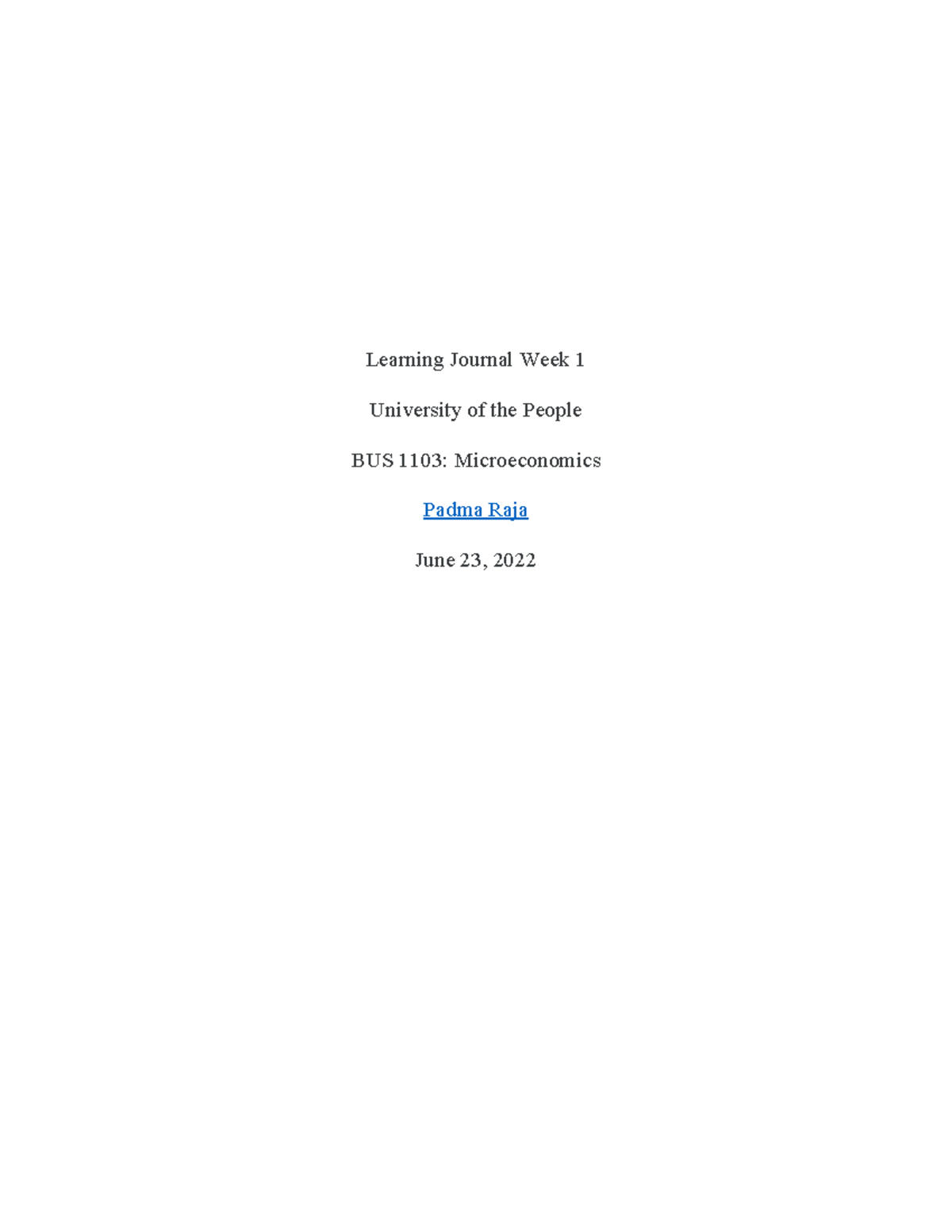 Learning Journal W1 docx.docx - Name Lupin Li Learning Journal: Week 1 ...