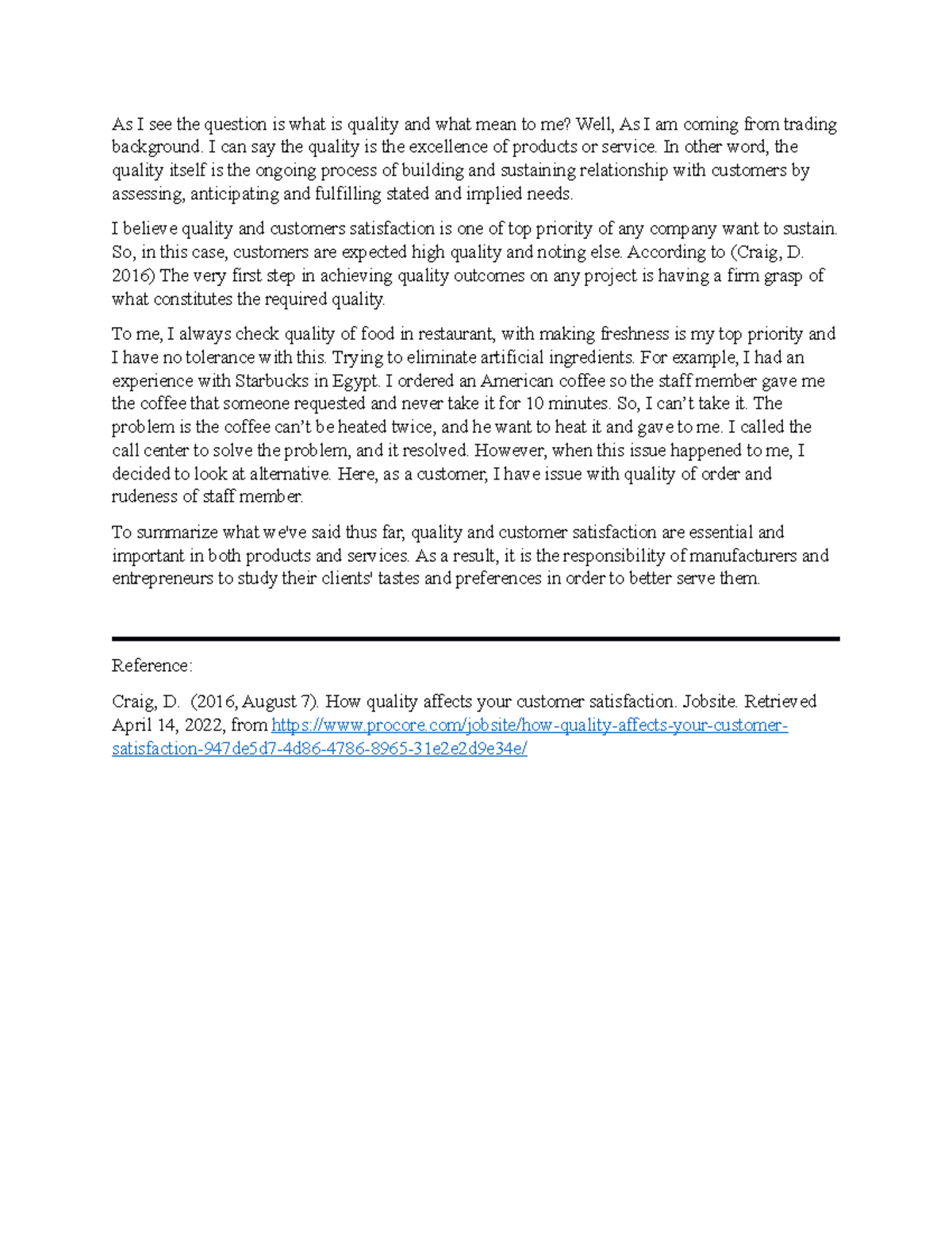 Learning Journal Week 1 - As I see the question is what is quality and ...