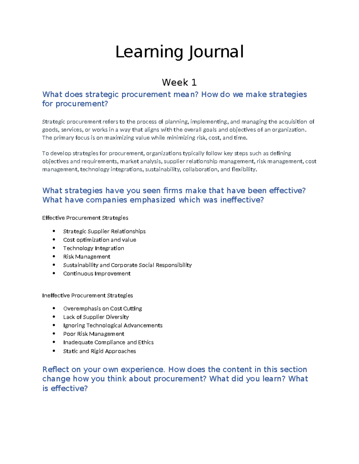 Learning Journal - What is procurement? - Learning Journal Week 1 What ...