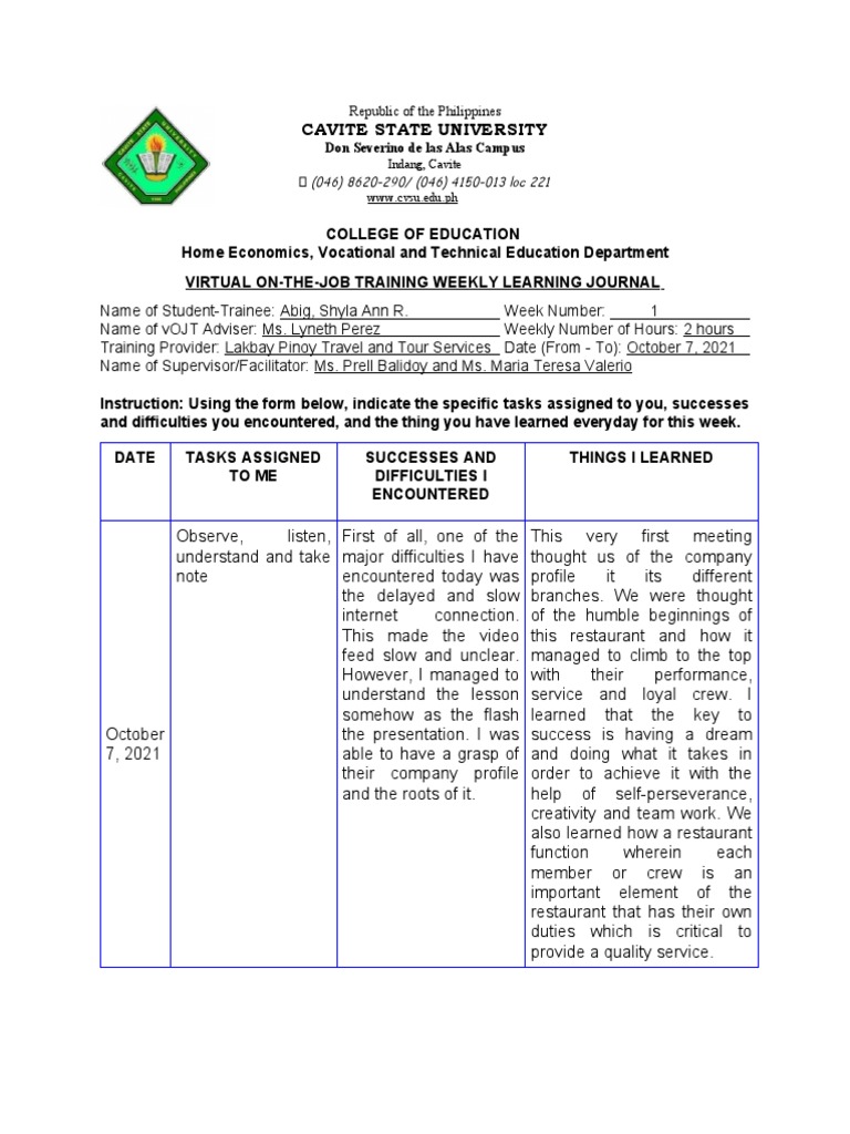 Virtual OJT Learning Journal Week 1 | PDF | Human Nature | Learning