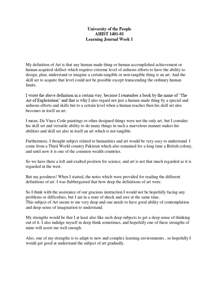 AHIST 1401 Learning Journal Week 1 | PDF | Philosophy