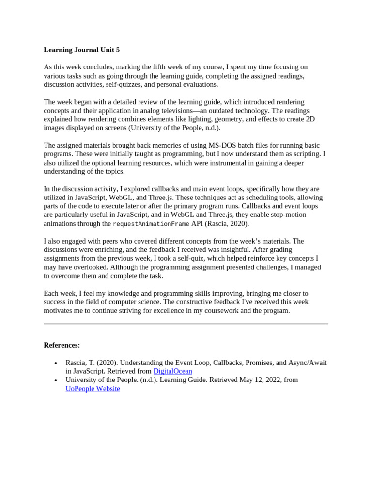 Learning Journal Unit 1.docx - Learning Journal Each week/unit you are ...