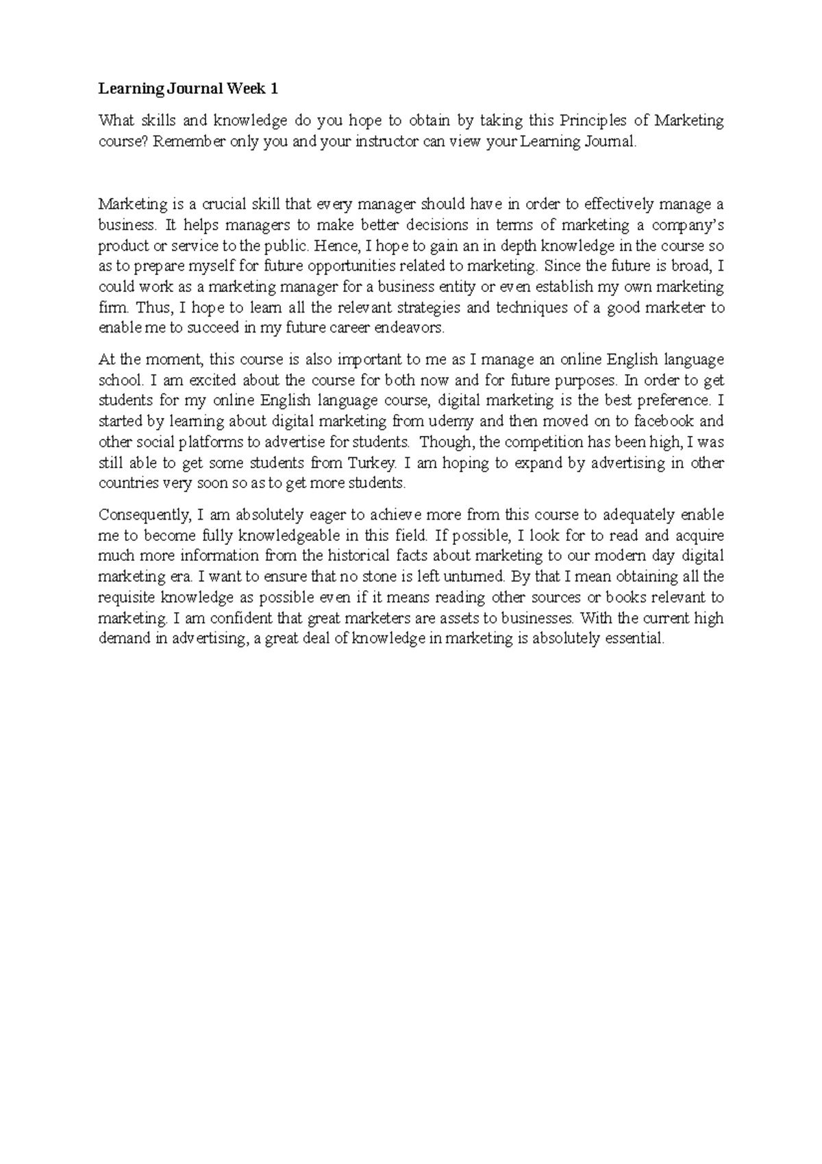 Learning Journal Week 1 - Marketing is a crucial skill that every ...