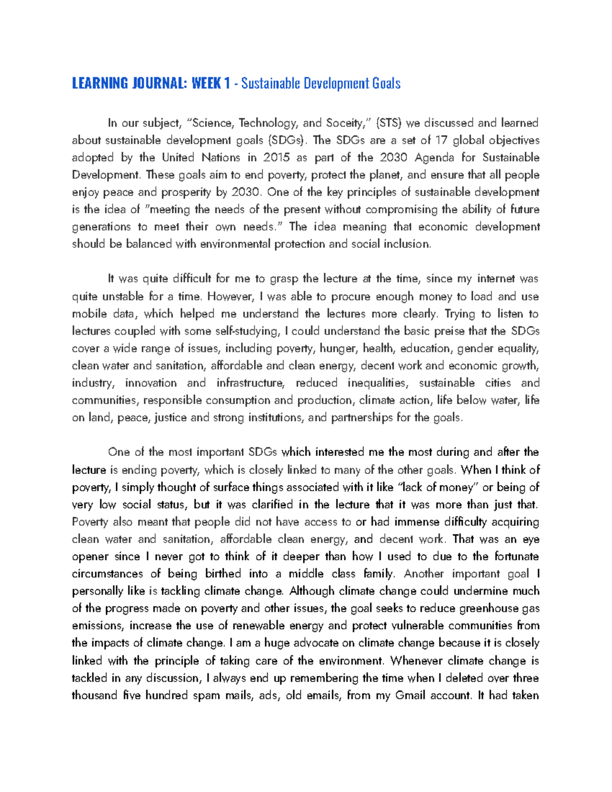 Title 16 - Learning Journal Week 1. - Title: Reflecting on My Learning ...