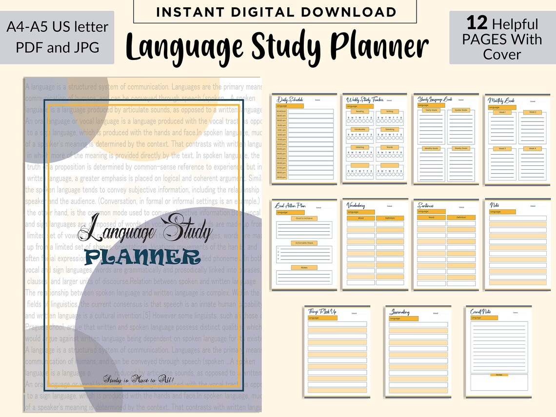 Language Study Guide Planner Digital Printable Learner Notebook ...