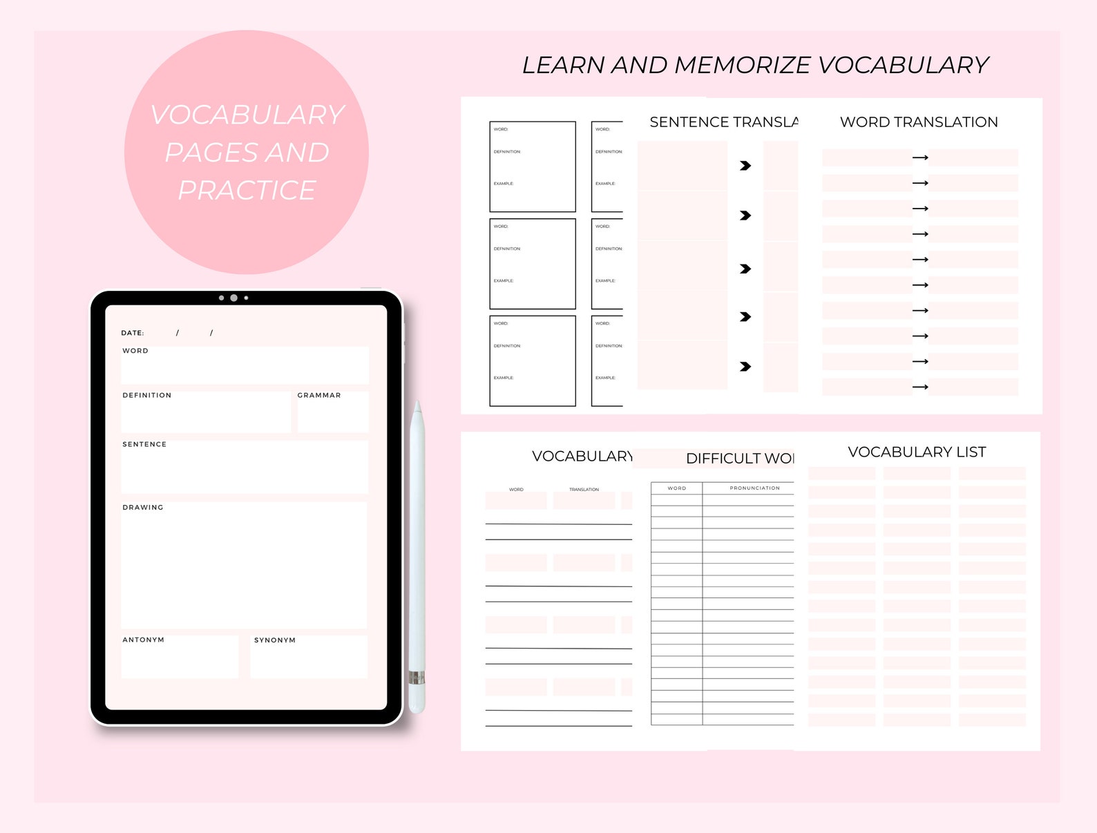 Language Study Planner Printable, Language Study Notebook, Vocabulary ...