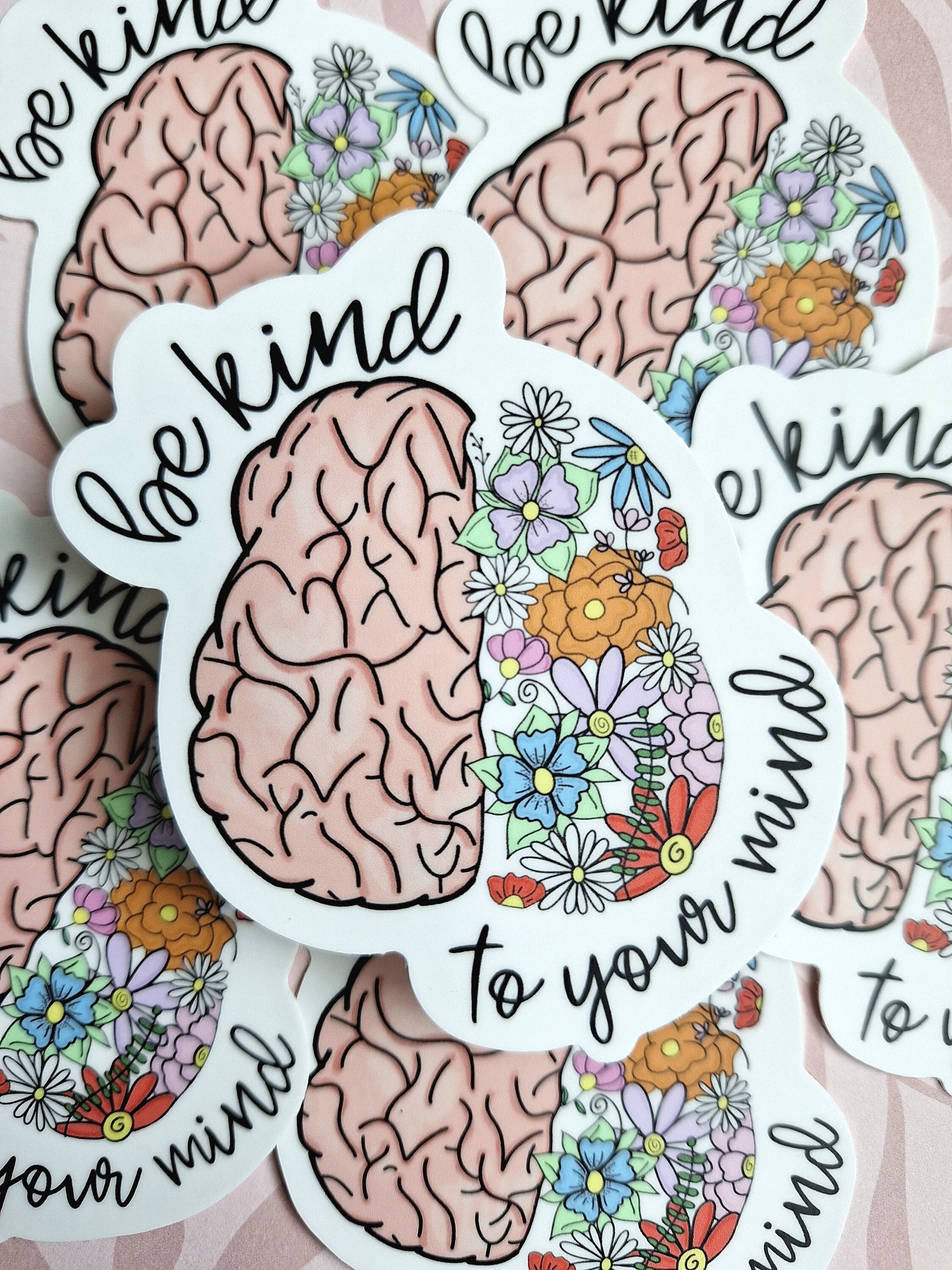 Be Kind to Your Mind Sticker, Mental Health Sticker, Floral Brain ...