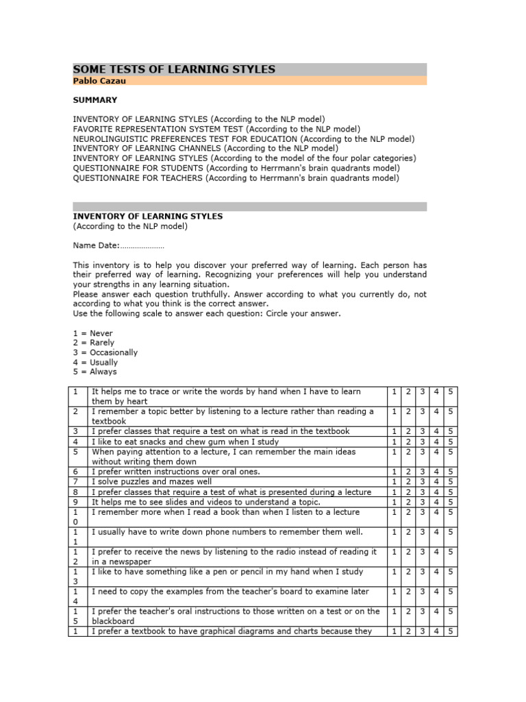Some Learning Style Tests | PDF | Learning Styles | Learning