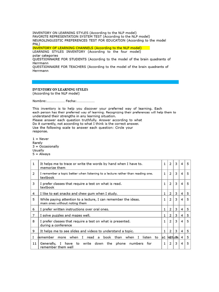 LEARNING STYLES TEST.pdf | PDF
