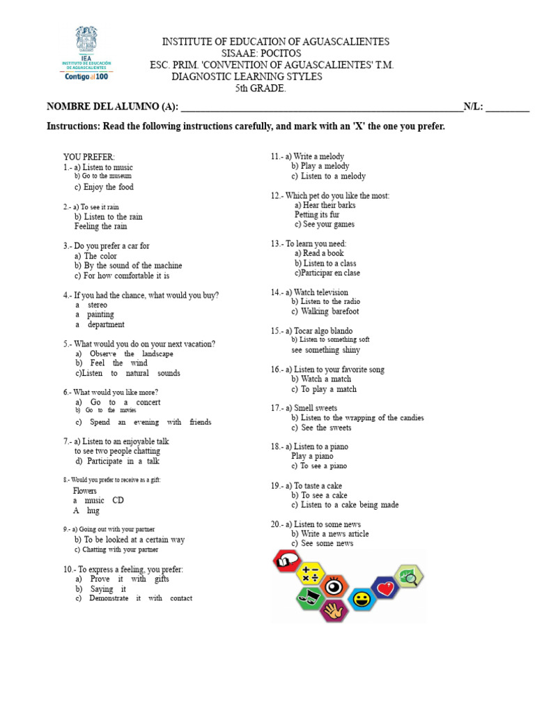Children's Learning Style Quiz at Valeria Sturm blog