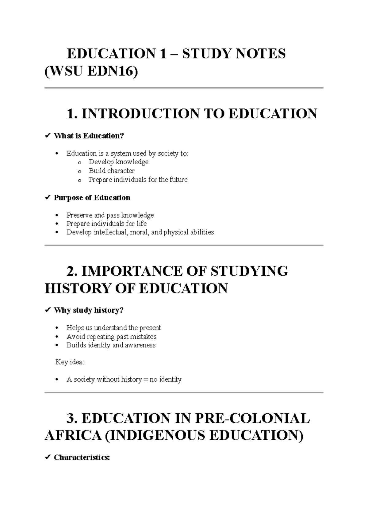 EDUCATION 1 STUDY NOTES (WSU EDN16): INTRO TO EDUCATION OVERVIEW - Studocu