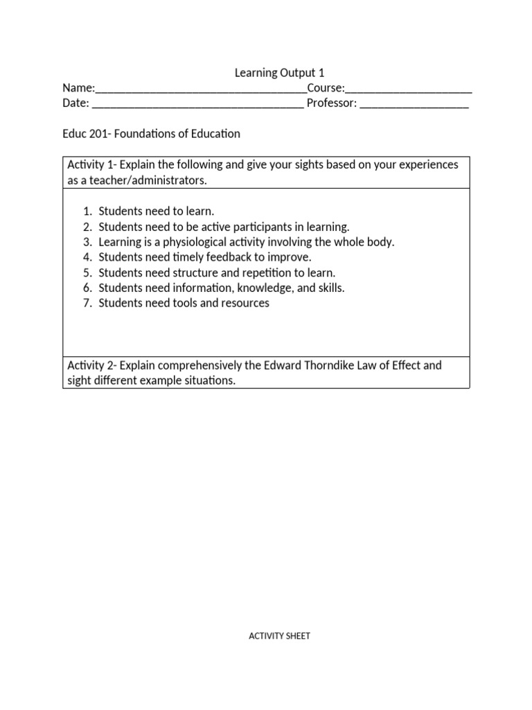 Student Activities Learning Outcomes at Felix Lesperance blog
