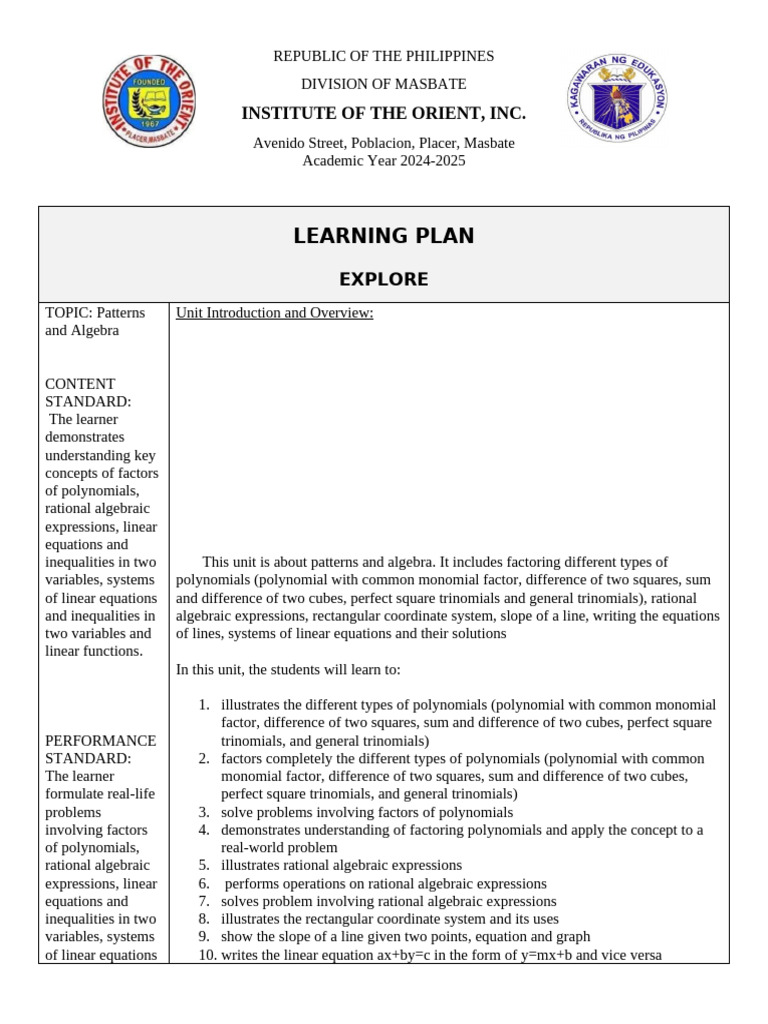 Sample Learning Plan | DOCX