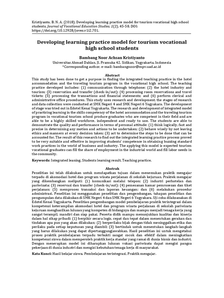 Developing Learning Practice Model For Tourism Voc | PDF | Learning ...
