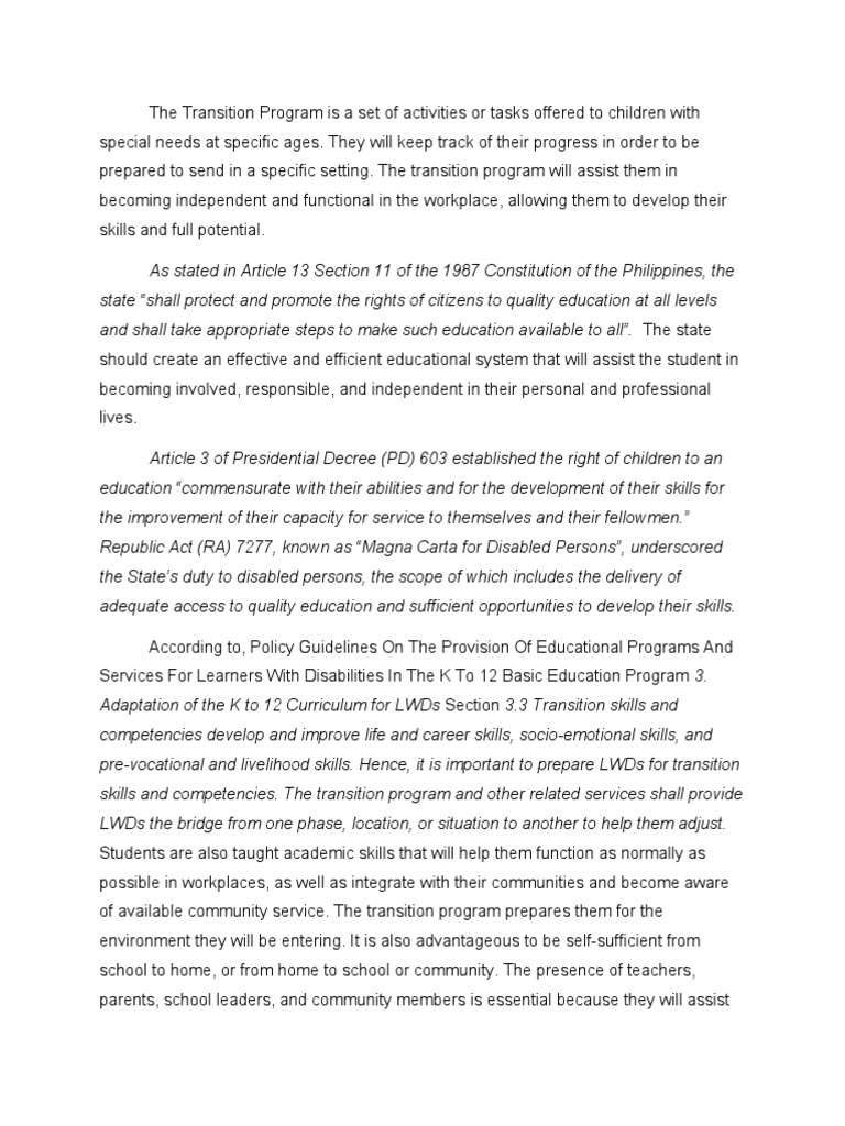 The Transition Program Is A Set of Activities or Tasks Offered To ...