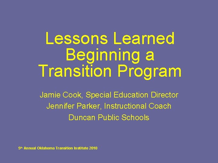 Lessons Learned Beginning a Transition Program Jamie Cook