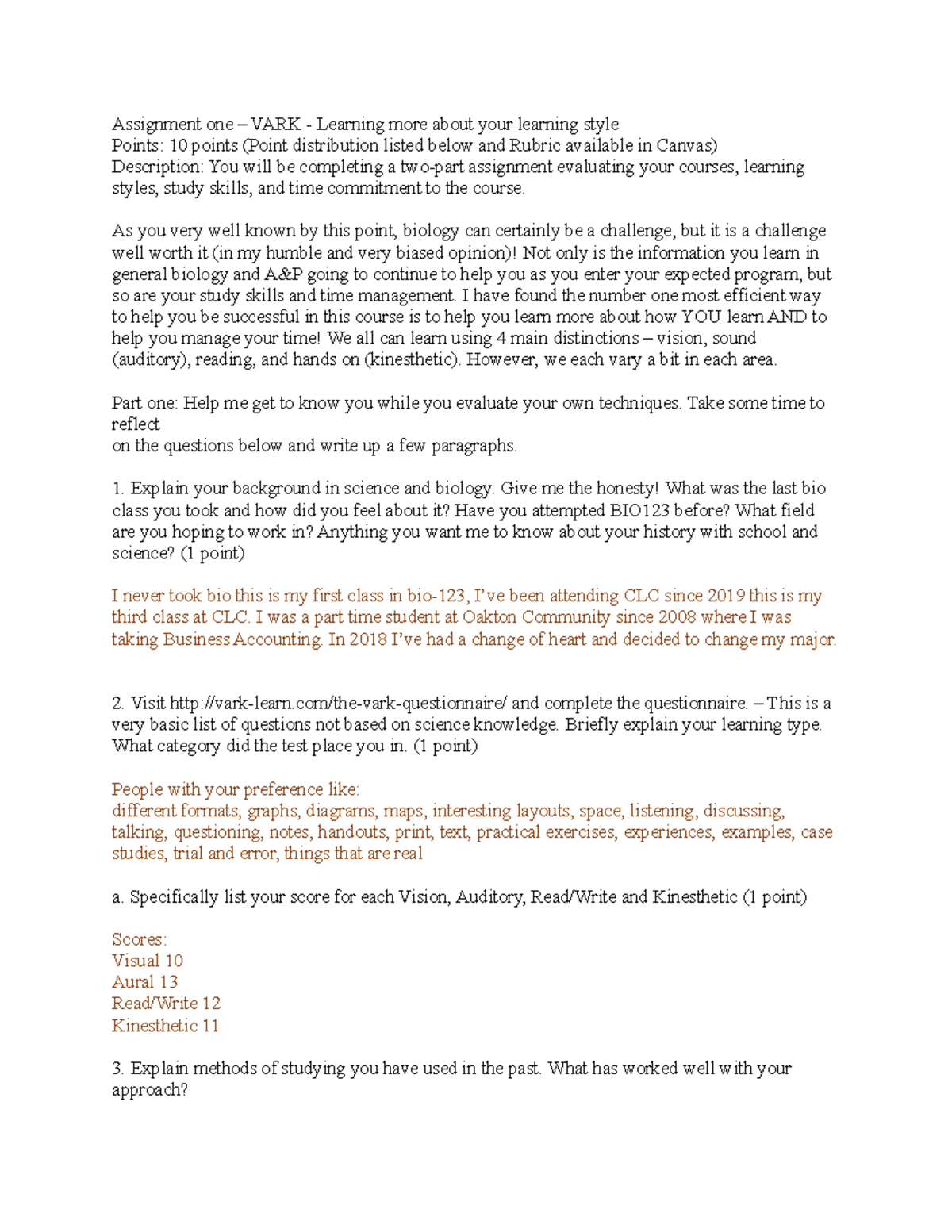 Learning Styles Assignment ANSWERED - Name: Vanessa Amoakohene Learning ...